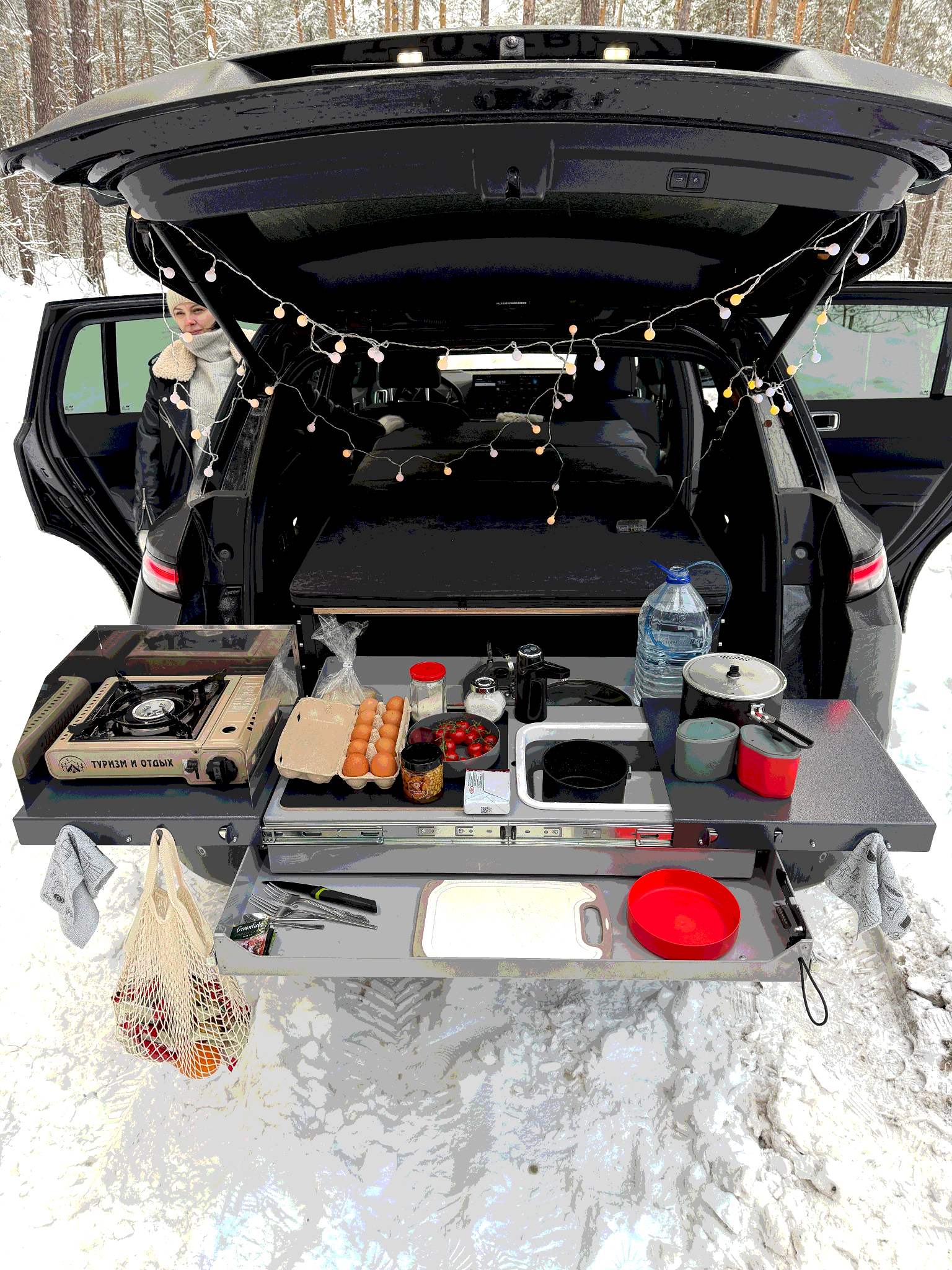 Модуль оснащён стойками с регулировкой высоты, что позволяет точно подстроить конструкцию под особенности багажника.