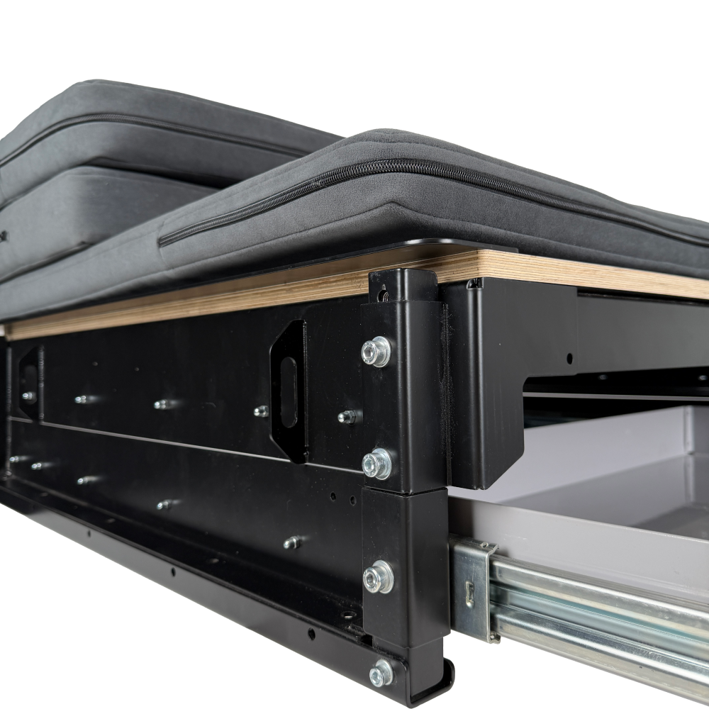 Мощные алюминиевые направляющие, которые обеспечивают плавное и надежное выдвижение. Конструкция рассчитана на нагрузку до 100 кг.